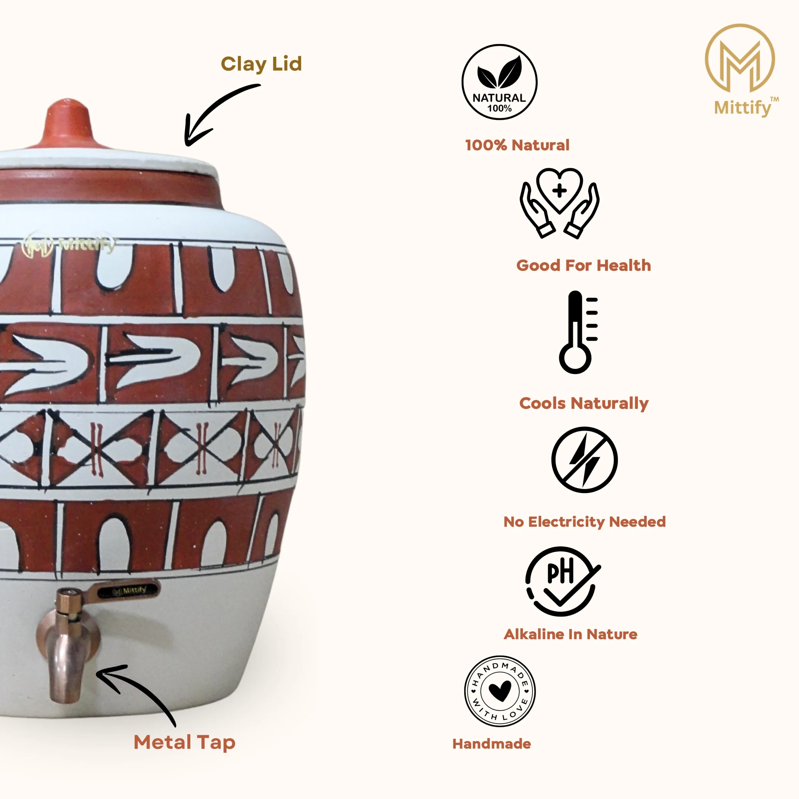 Earthen White Clay Water Pot Cross Design with Metal Tap – 372oz/11L